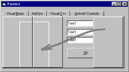 Say you want to change our three-tab tutorial application by adding a new tab between the first and second tabs. The first thing you need to do is add the new tab. You can create the new tab using the Tabs property page or by changing the Caption property to the following string: