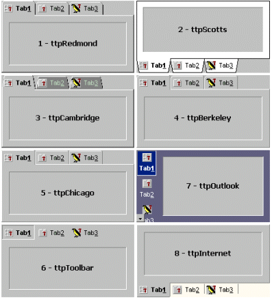 Position, Style, Appearance, Separators PicturePos, ShowFocusRect, FontBold, FrontTabColor, BackTabColor, BackColor, FrontTabForeColor, ForeColor, and TabOutlineColor. |