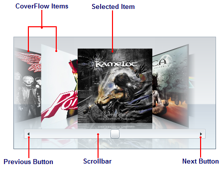 The scrollbar allows users to scroll through a list of CoverFlow items. You can remove the scrollbar through the C1CoverFlow template (see Removing the Scrollbar).