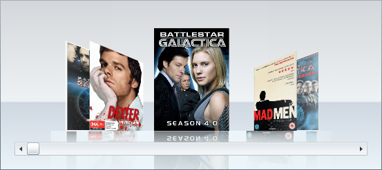 The following image demonstrates a C1CoverFlow control with its EyeHeight property set to 1.