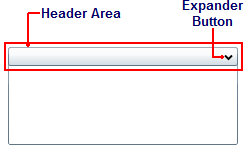 The placement of the header element and expander button will change depending on the expand direction of the control. For more information on expand directions, see the Expand Direction topic.