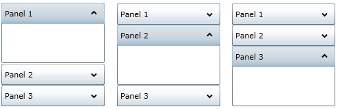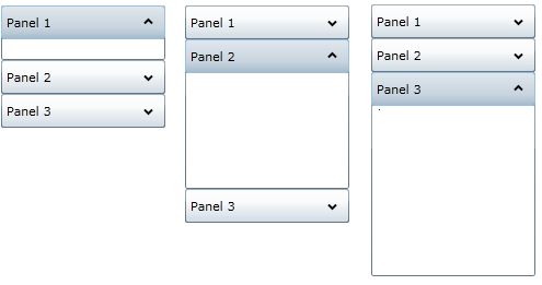 The default behavior of an accordion pane (C1AccordionItem) is to fill only to the height (for accordions that expand up or down) or width (for accordions that expand right or left) of an accordion pane's contents. This will cause the accordion to grow to different heights or widths depending on the height or width of the content for a given pane. This is illustrated in the example below.