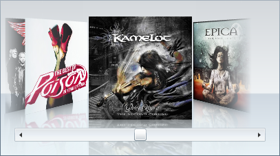 You can modify the eye distance by setting the EyeDistance property. The value of this property is relative to the current cover size, meaning that setting it to a value of 0.5 means that the distance will be half the size of the CoverFlow item. By default, this property is set to a value of 1.5.