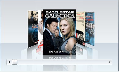 The following image demonstrates a C1CoverFlow control with its SelectedItemDistance property set to 0.4.