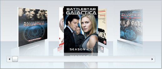 The following image demonstrates a C1CoverFlow control with its ItemDistance property set to 1.