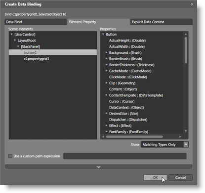 3. In the Create Data Binding dialog box, click the Element Property tab.