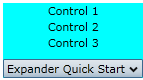 <c1:C1Expander Height="200" Width="250" Background="Aqua" Header="Expander Quick Start" ExpandDirection="Up">