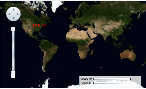 In this topic, you will add a label to a geographic point – the geographic coordinates of Erie, Pennsylvania (USA) - using a C1VectorLayer and a C1VectorPlacemark. For more information on vector layers, see Vector Layer.