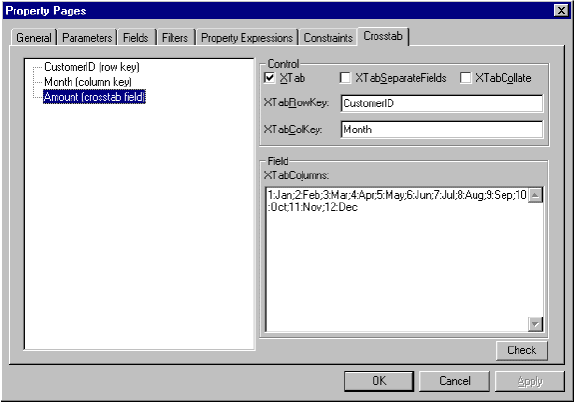 | Property Pages > Using True DataControl Property Pages > Crosstab Page |