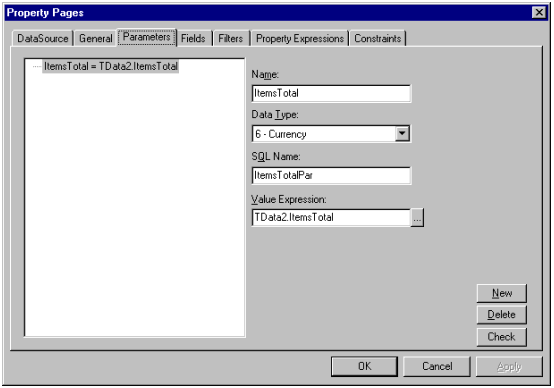 | Property Pages > Using True DataControl Property Pages > Parameters Page |