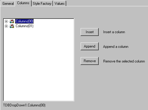 | Design Time Interaction > TDBDropDown Property Pages > Columns property page (TDBDropDown) |