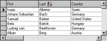 The first time the user clicks column 1, its HeadingStyleproperty is set to Ascending, and the foreground bitmap associated with this style appears to the right of the text within the column header. Note that you may have to adjust the HeadLinesproperty at design time to accommodate the height of the bitmap.