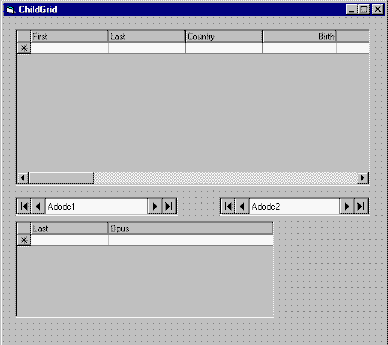 To do this, start by placing two Microsoft ADO Data Controls (ADODC) and two True DBGrid controls (OLE) on a blank form.