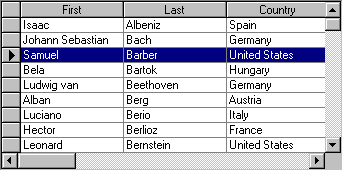 However, unlike column selections, nonadjacent row selections are supported. If the user holds down the Ctrl key while making the selection, the current row does not change, and any previously selected rows remain selected. This technique also enables the user to select multiple rows, one at a time. Since selected rows do not have to be adjacent, the user can also operate the vertical scroll bar to bring other rows into view if desired.