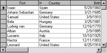 If the user drags the pointer all the way to the left, the column retains its original Width property setting, but its Visible property is set to False. To make the column visible again, the user can point to the right side of the divider of the column that preceded it. The pointer turns into a vertical bar with a right arrow.