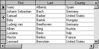 Dragging the pointer upward makes the rows smaller; dragging it downward makes the rows larger. All rows in the grid will be resized to the same height; it is not possible to resize individual rows. If the grid does not display the record selector column (that is, the RecordSelectors property is False), users cannot interactively change the row height.