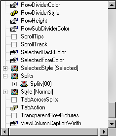 Note that most of the split properties are not present at the root level of the General property tree. For example, you cannot set the AlternatingRowStyle property without expanding a Split object, because the value of this property can vary from split to split. The term split-specific is used to describe such properties, since they apply to individual splits rather than the grid as a whole.