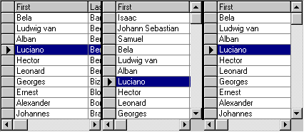 Note that the middle split now contains a vertical scroll bar. This scroll bar operates only on the middle split, since it is the only one with its ScrollGroup property equal to 2. The vertical scroll bar in the rightmost split now controls the leftmost and rightmost splits only. It no longer affects the middle split.
