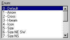 To change the value of an enumerated property such as MousePointer, select the desired item in the list. You can also use the property tree context menu to change the value of an enumerated property without selecting a different property in the tree.