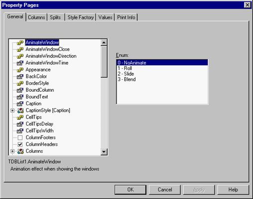 | Design Time Interaction > True DBList Property Pages > General property page (TDBList) |
