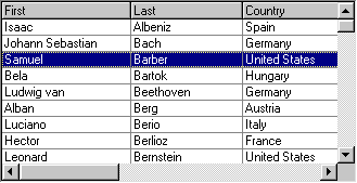 However, unlike column selections, nonadjacent row selections are supported. If the user holds down the Ctrl key while making the selection, the current row does not change, and any previously selected rows remain selected. This technique also enables the user to select multiple rows, one at a time. Since selected rows do not have to be adjacent, the user can also operate the vertical scroll bar to bring other rows into view if desired.