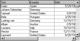 If the user drags the pointer all the way to the left, the column retains its original Width property setting, but its Visible property is set to False. To make the column visible again, the user can point to the right side of the divider of the column that preceded it. The pointer turns into a vertical bar with a right arrow.