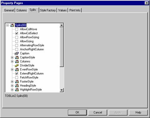 | Design Time Interaction > True DBList Property Pages > Splits property page |