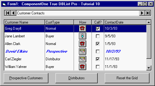 In this tutorial, you will learn how to change the list's display to highlight rows by defining new styles at run time. True DBList uses Style objects to apply font and color characteristics to rows, columns, and individual cells.