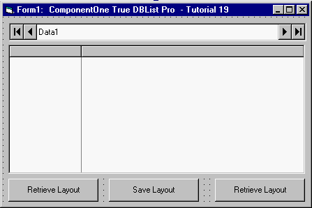 Set the Click (Visual Basic) property of Command1, Command2, and Command3 to Retrieve Layout, Save Layout, and Retrieve Layout, respectively. Your form should now look like this.