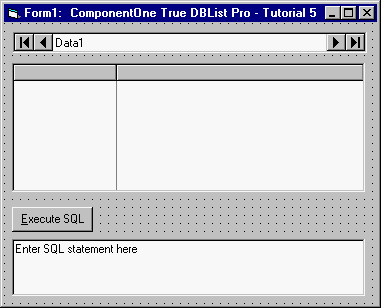 Set the Caption property of Command1 to Execute SQL and the MultiLine (TextBox control) property of Text1 to True. Set the Text (TextBox control) property to Enter SQL statement here.