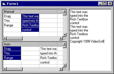 The three controls shown are OLE drag drop sources and targets. This means you can drag data from one control to the others, or between any of the controls and external applications.