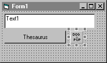 Add a VSThesaurus control to the form by double clicking on the VSThesaurus control button in the Toolbox. Add a textbox and a command button to the form and set the following properties: