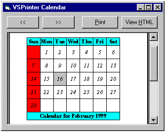 That's it. The VSPrinterCalendar application is done. Here's a snapshot of the final application in action: