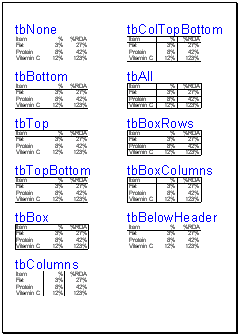 Notice how the header and body are treated as different tables. For example, for the setting tbBottom, you get a border below the header row and another below the last row.