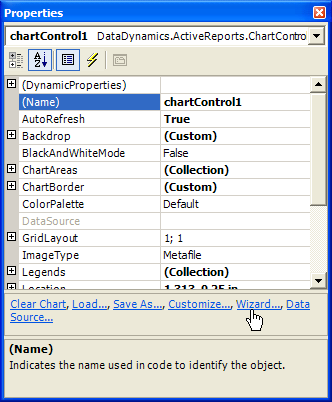 You can also access the wizard through the Wizard verb that appears below the Properties window when the chart is selected on the report.