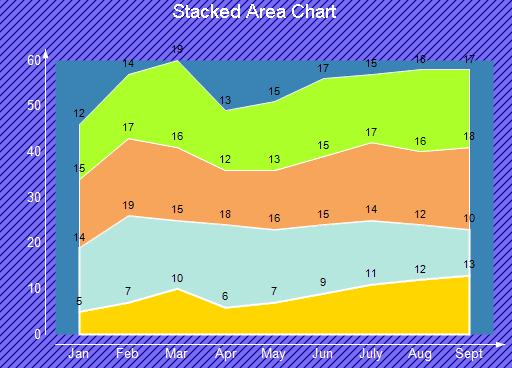 A stacked area chart is an area chart with two or more data series stacked one on top of the other. Use this chart to show how each value contributes to a total.