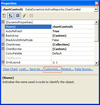 - With the chart control highlighted, click the Customize verb below the Properties panel to open the Chart Designer dialog.