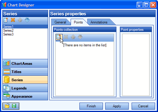 - Add points to the series by clicking the Add new item icon.