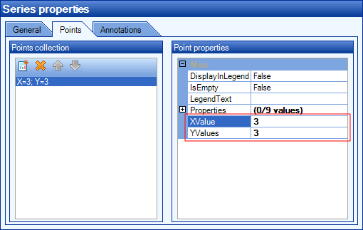 - For each point that you add, supply an XValue and YValue in the Point Properties box.