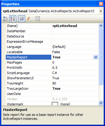 - In the Properties window, set the MasterReport property to true.