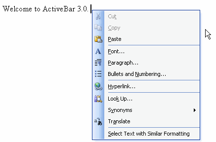 A context menu is a Popup band that displays at either specified coordinates or the current mouse position. A context menu displays icons, text, and submenu links providing access to applicable commands relevant to a specific function or area of an application. To set the location where a context menu appears in an application, use the PopupMenu method. You can also create a no-dismissal area for a context menu using the PopupMenuEx method.