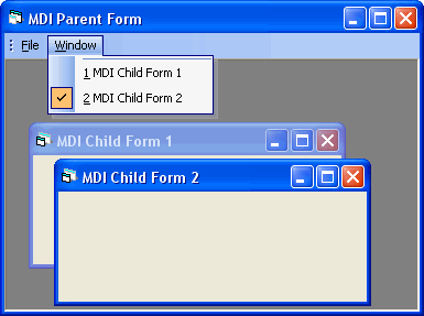 MDI Childband Menus allow you to create additional menu bars for active MDI (Multiple Document Interface) child forms. Child menu bars can merge with any associated parent menu bar. Use the RegisterChildMenu method to register a Child Menu bar to a specific child form.