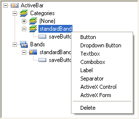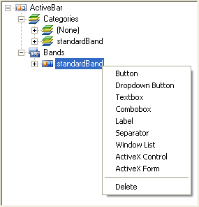 ActiveX Control: Adds an ActiveX control to the selected category or band.