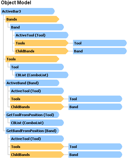 The main element for the ActiveBar 3.0 object model is the ActiveBar control. This component controls all aspects of the ActiveBar bands and tools in your layout. When you add it to a project, drag the ActiveBar control from the Visual Basic 6.0 toolbox and size it to fit the form.