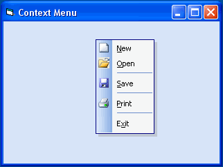 - Add the following code to the MouseUp event to display the context menu at the current coordinates of the mouse pointer.