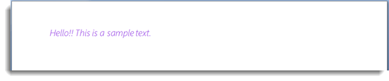 var text = "Hello!! This is a sample text."; var font = new Font("Segoe UI Light", 20, RtfFontStyle.Italic); word.AddParagraph(text, font, Colors.BlueViolet, RtfHorizontalAlignment.Justify);