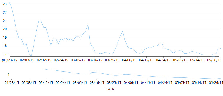 public partial class Indicators : UserControl { DataService dataService = DataService.GetService(); ATR atr = new ATR() { SeriesName = "ATR" }; public Indicators() { InitializeComponent(); } public List<Quote> Data { get { return dataService.GetSymbolData("box"); } } public List<string> IndicatorType { get { return new List<string>() { "Average True Range", }; } } void OnIndicatorTypeSelectionChanged(object sender, SelectionChangedEventArgs e) { FinancialSeries ser = null; if (cbIndicatorType.SelectedIndex == 0) ser = atr; if (ser != null && !indicatorChart.Series.Contains(ser)) { indicatorChart.BeginUpdate(); indicatorChart.Series.Clear(); indicatorChart.Series.Add(ser); indicatorChart.EndUpdate(); } } void OnFinancialChartRendered(object sender, C1.WPF.Chart.RenderEventArgs e) { if (indicatorChart != null) { indicatorChart.AxisX.Min = ((IAxis)financialChart.AxisX).GetMin(); indicatorChart.AxisX.Max = ((IAxis)financialChart.AxisX).GetMax(); } } }
