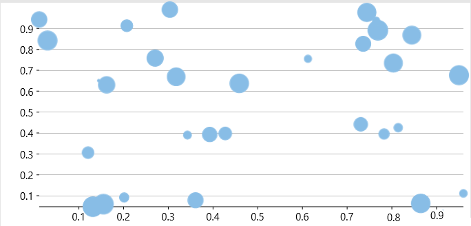 In this example, the chart is bound to a list containing objects with "x", "y", and "size" properties. The chart contains a single series and its binding property is set to the string "y,size".