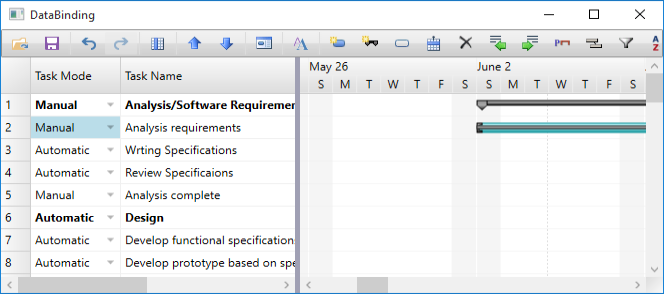 Data binding refers to the process of binding a data provider to a data consumer in a synchronized manner. You can bind GanttView control to any .NET data source requiring little code and display your project related attributes. GanttView supports data binding with various ADO.NET objects such as DataTable, DataView and DataSet.
