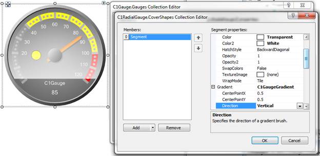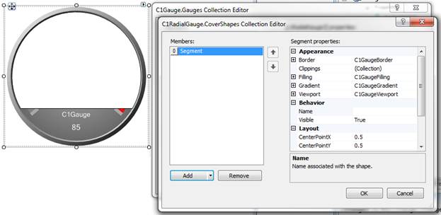 3. Click the Add drop-down arrow and select C1GaugeSegment.